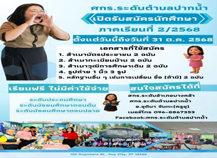 ศกร.ระดับตำบลปากน้ำเปิดรับสมัครนักศึกษา ภาคเรียนที่ 1/2568