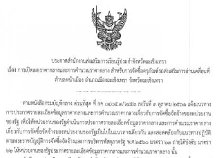 ประกาศสำนักงานส่งเสริมการเรียนรู้ประจำจังหวัดฉะเชิงเทรา เรื่อง การเปิดเผยราคากลางและการคำนวณราคากลาง สำหรับจัดซื้อครุภัณฑ์รถส่งเสริมการอ่านเคลื่อนที่