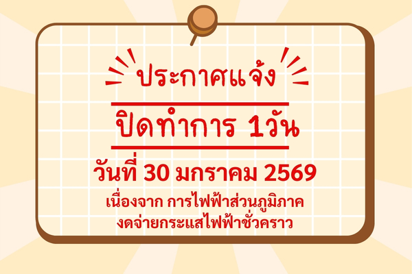 แจ้งปิดทำการ ในวันที่ 30 มกราคม 2569 ตั้งแต่เวลา 09.00 - 16.00 น.