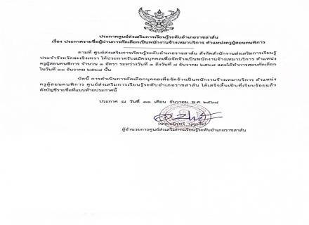 ประกาศรายชื่อผู้มีสิทธิ์เข้ารับการคัดเลือกเป็นพนักงานจ้างเหมาบริการ ตำแหน่งครูผู้สอนคนพิการ