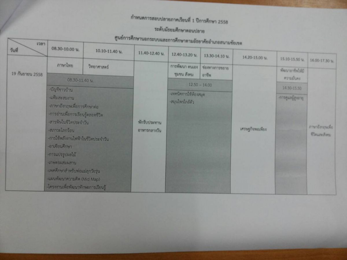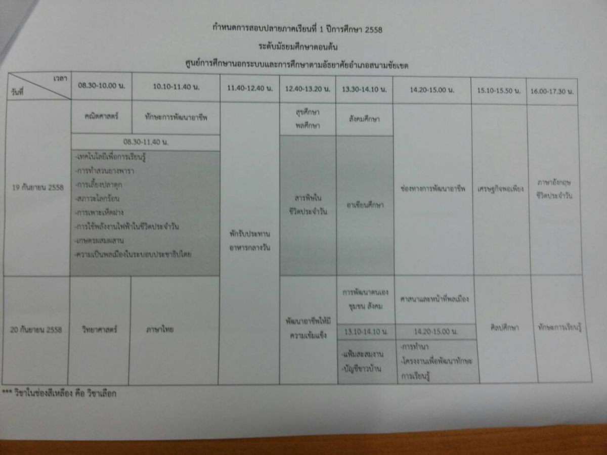 สอบปลายภาค ภาคเรียนที่ 1 ปีการศึกษา 2558