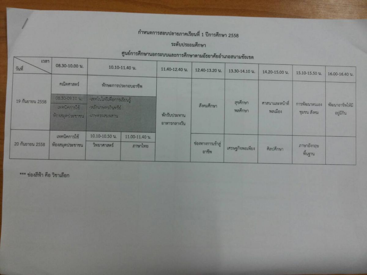 สอบปลายภาค ภาคเรียนที่ 1ปีการศึกษา 2558